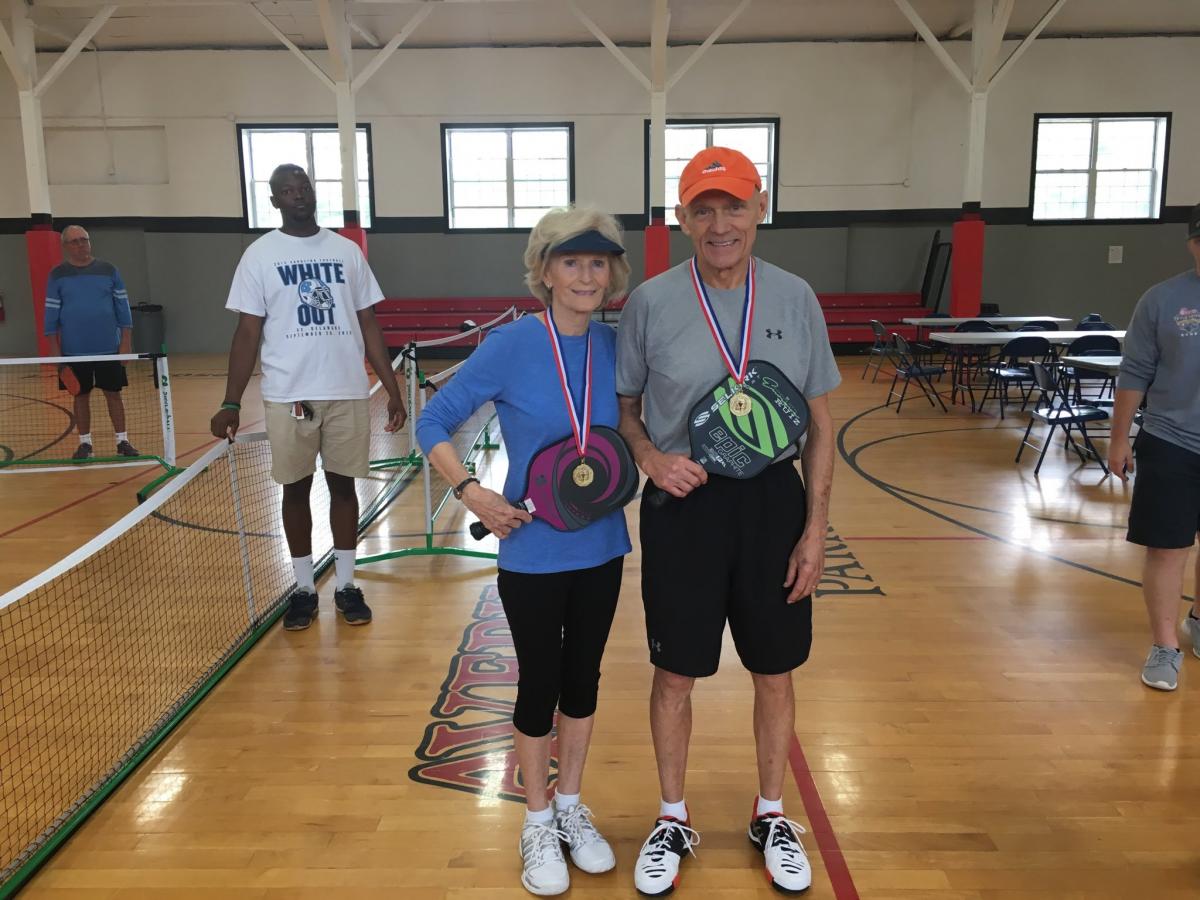 On May 22, 2017, Beverly and Keith Shaver participated in the High Country Senior Games in North Carolina. Beverly and Keith had a hugely successful day. Not only did they win the gold playing together in mixed doubles, but Beverly placed first in women's doubles (with partner Cookie Parker) and Keith placed first in men's doubles (with partner Don Blasberg). By winning these medals, Beverly and Keith qualify to participate in the North Carolina Senior Games in Concord, NC in October.