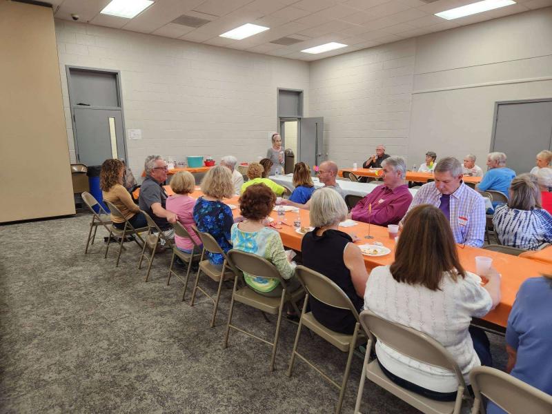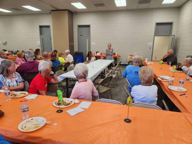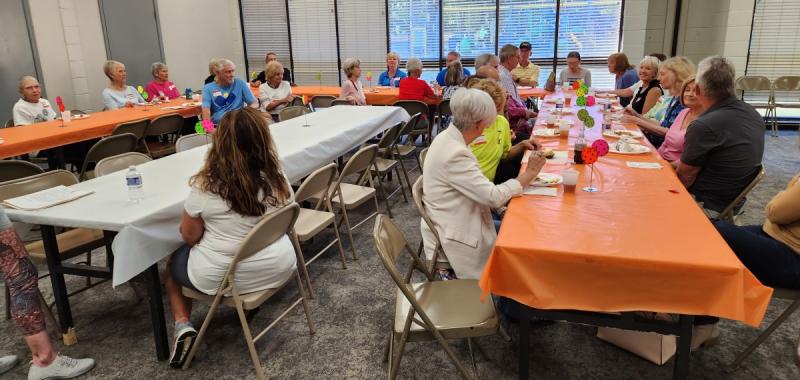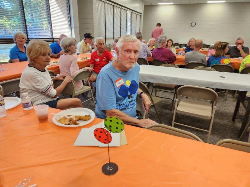 Great turnout for our Friday Fun Night Potluck Play Social. Food was great. Mike Beckner, one of the founders of pickleball in Aiken, took a moment to acknowledge Ron Nelson's contributions to Aiken Pickleball these past years. Kay Goers and Billy Haller won the door prizes, gift certificates for lessons with Mo and Ben. The evening ended with open play in Gym 2. All-in-all a great evening. Special thanks to Faith Loeb, Pat Smith and everyone else that made this happen. Select Read More to see photos.