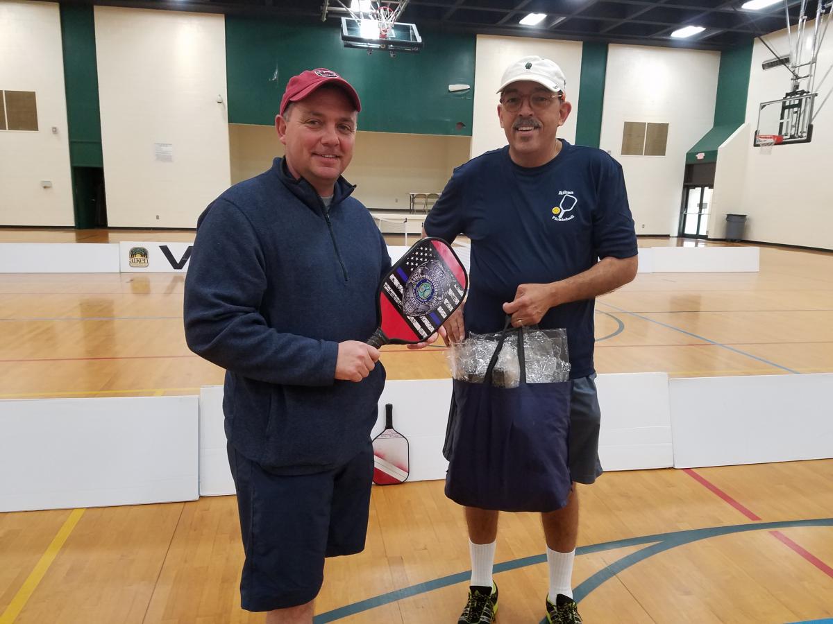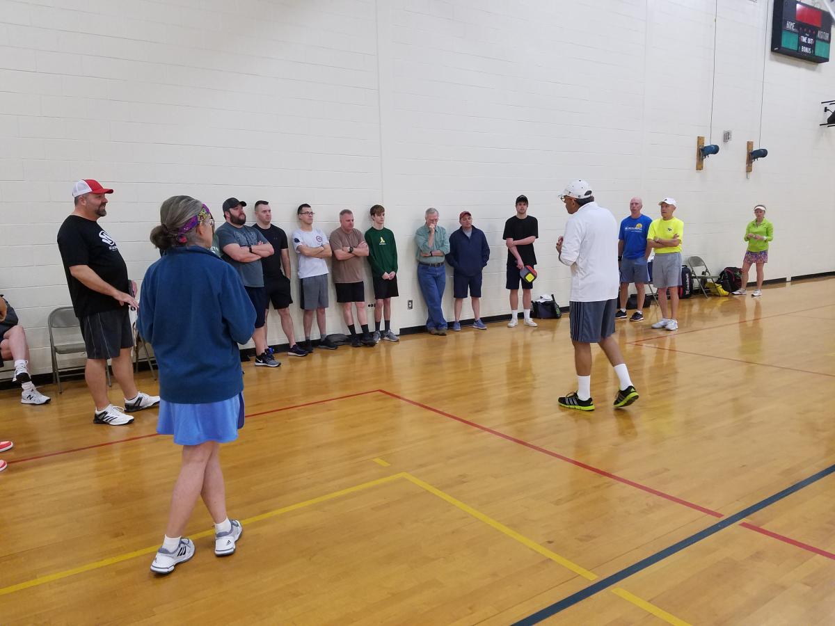 On Saturday, March 30th, a group of Aiken Department of Public Safety recruit officers attended a clinic that was arranged by Mo Garcia (district ambassador) and Karl Odenthal (ADPS). To kick off the event, some of our top local players (Josh Booth, Jim Hughes, Wojcieck Adamek, and Mo Garcia) played an exhibition game. This was followed by the presentation of paddles to the ADPS recruits. The recruits were given a demonstration of how to set up a net, then were joined on the court by various Aiken players for some lively games of pickleball.