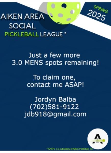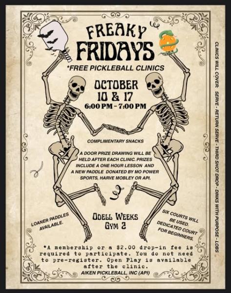 Aiken Pickleball Inc. is hosting a New Players Clinic indoors at the Gregg Park Civic Center on Saturday, October 26th, for people new to the game of pickleball. Schedule as follows: