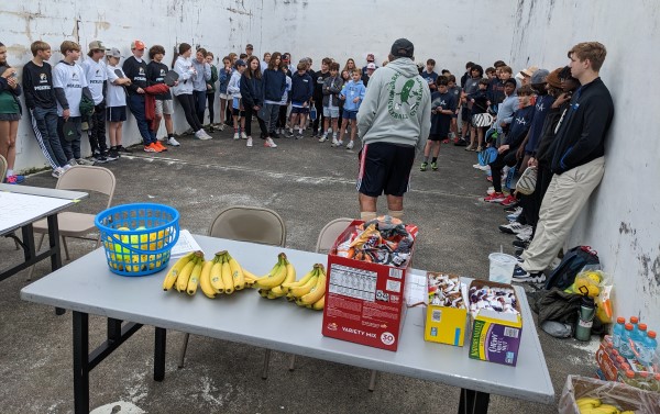 The photo below is how someone left the closet at Odell Weeks today. Notice that the dividers are blocking the entrance to the upstairs door despite the sign that says DO NOT block door. This is a no, no. There is a photo on the front door of the closet that shows how the nets and dividers should be stored. Please follow this guide.