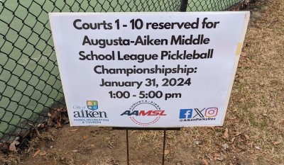There was some great pickleball played yesterday afternoon on the fourteen outdoor courts at Virginia Acres Park. Over fifty girls and boys participated in the Augusta-Aiken Middle School League Pickleball Championship representing their individual schools. These kids are good! Pickleball has officially joined basketball, soccer, football, baseball and golf league competition for the fourteen schools that are members of AAMSL. See photos.